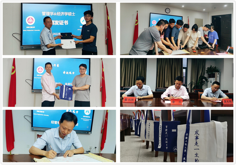 6月2日下午,经济与管理学院为2022届毕业研究生举行欢送仪式。学院党委副书记章兵、院长龚本刚,副院长蔡书凯、研究生秘书何惠妍、辅导员赵恒梅以及2022届毕业研究生参加了欢送仪式。