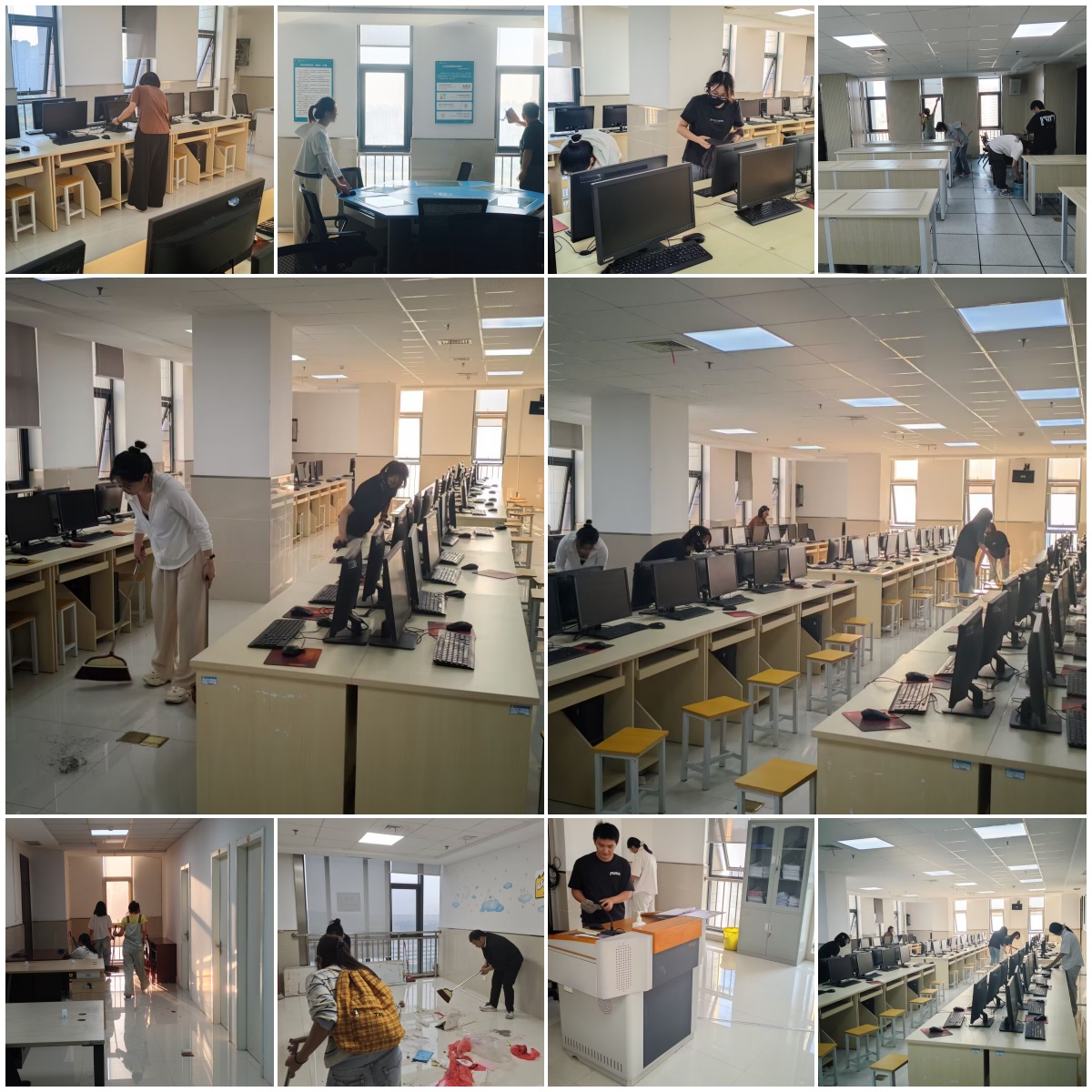 活动开始前,支部深入学习本科教育教学审核评估的相关要求,结合学院实验室与办公区域的实际情况,制定清扫方案,明确人员分组、区域划分、物资保障、安全反馈等任务,确保责任到人、分工协作。党员同志们接到任务指令后迅速行动,手持扫帚、抹布、拖把等工具,以饱满的热情投入到劳动中。经过清扫,学院的实验室和办公室公共区域环境得到进一步改善。