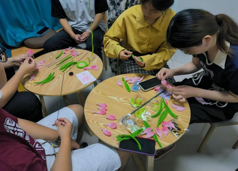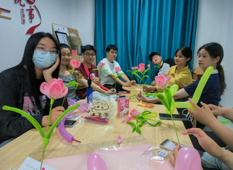 为丰富同学们校园文化生活,提高大学生艺术素养和综合素质,6月7日晚,数理与金融学院在男生宿舍11栋“评理说事大课堂”开展“生活技能小课堂”第四讲。本期活动由互金221胡心怡同学教同学们如何制作扭扭棒花束以及编手绳,数十名同学参与。
