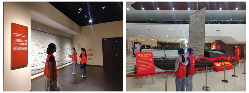 为深度探寻芜湖的红色记忆,实践团队来到了芜湖市博物馆,参观了“峥嵘岁月,风起云涌”专栏,芜湖的大批知识分子在辛亥革命及新文化运动时期积极响应并投身革命的洪流中。作为自辛亥以革命来安徽革命运动的策源地、皖江抗日的主战场、解放大军渡江的重要突破口,芜湖在建党百年路上的红色故事数不胜数。队员们进一步了解芜湖在灿烂历史长河中的发展与变迁,感受到改革开放以来芜湖发展的巨大成就。