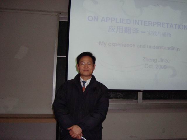 郑金泽老师为芜湖市资深金牌口译员、副译审,现任安徽师范大学外国语学院党委书记,长期从事外事工作,曾任安师大对外教育与交流部副主任。他曾多次担任国内、国际大型口译任务的主翻,如19907月第一届亚洲女子手球锦标赛及十一届亚运会手球比赛、1994—1995年安徽省电力局与美国国际技术合作公司、美国CEA公司及加拿大TRANS工业ALTA等专业电力工程公司合资办电项目谈判、2001年“东泰杯”第五届女子世乒赛、2006年芜湖房博会论坛、王金山省长会见沃尔玛CEO等等。(外语系)